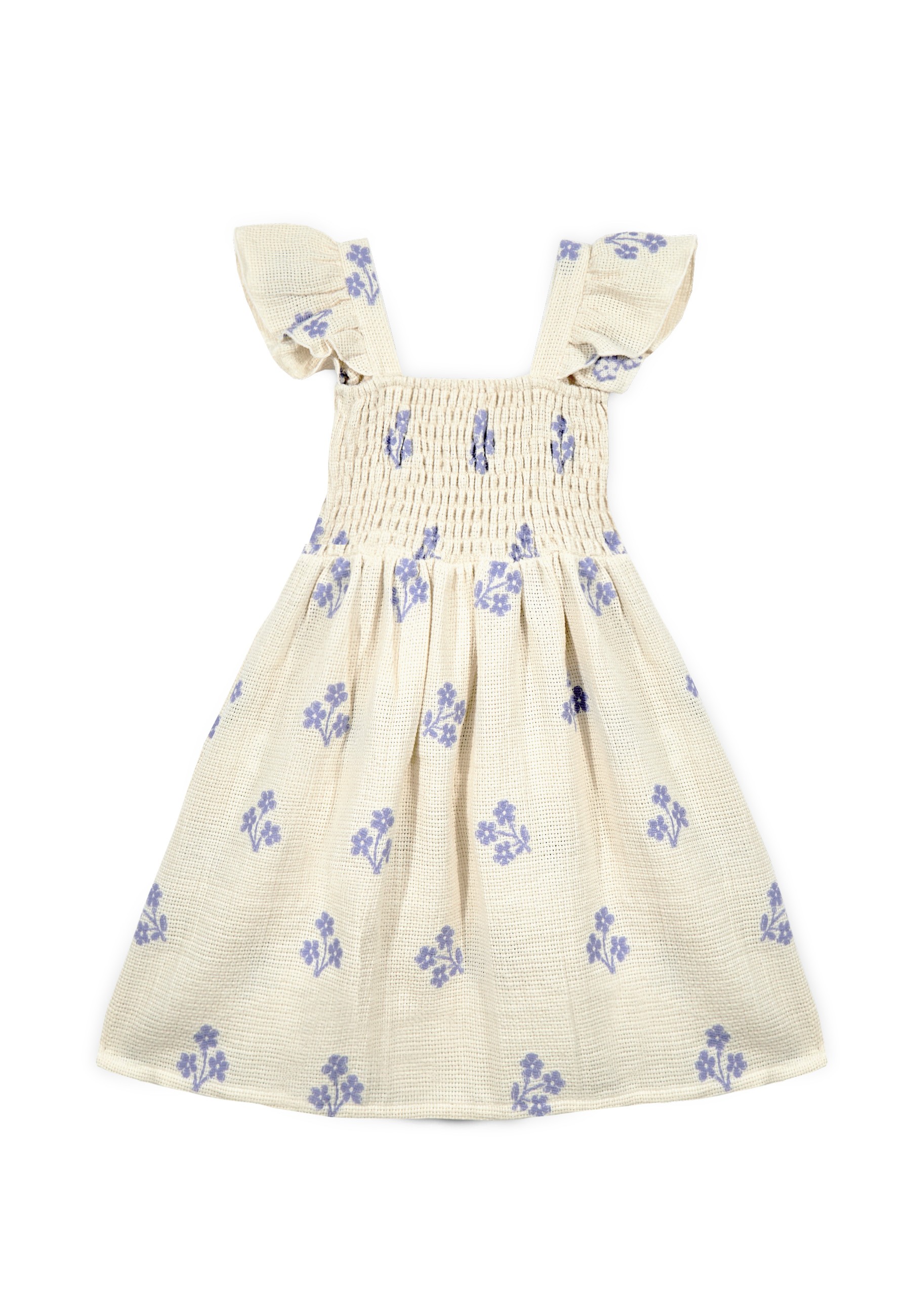 Styling becomes childsplay with this airy A-line dress. Presented in an embroidered organic cotton, it's enriched with an allover floral embroidery and oversized ruffle details across the straps. - Square neck - Sleevless - Frill detail - Shirred bodice - Flared skirt