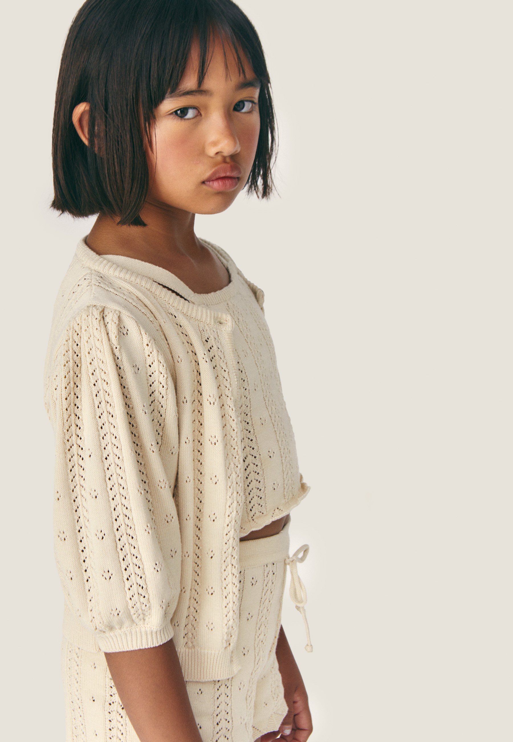 Our signature open weave knitwear takes on a three-dimensional flavour across the Nilda cardigan. Knit from a lightweight cotton, its effortless volumes make it a great layering piece.