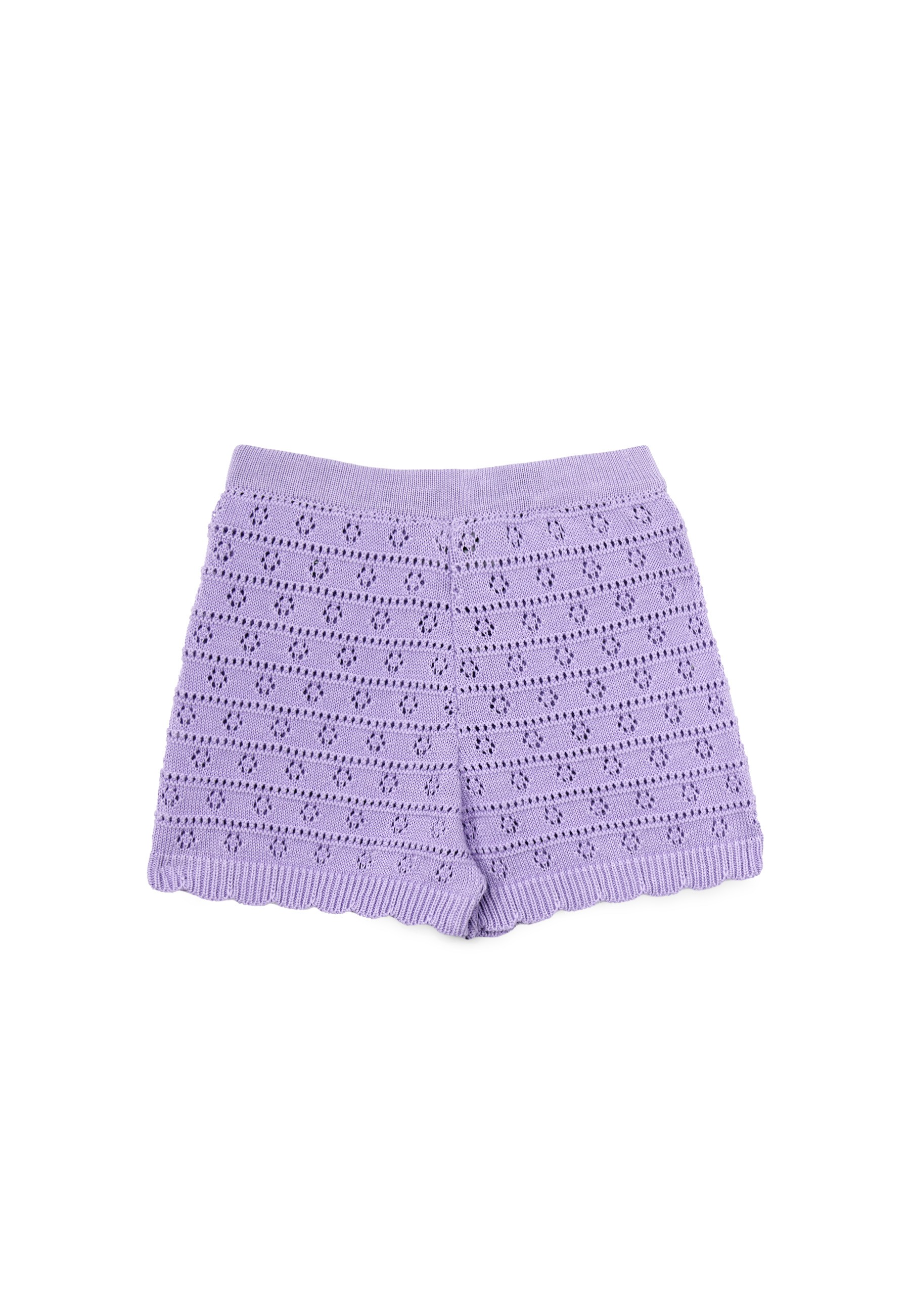 Bring the warmth of the sunset to their dressing with our Thalia shorts. Knit from a lightweight cotton, they're defined by an open weave knit detail and a scalloped edge. - Elastic waist - Open weave knit detail - Scalloped hem