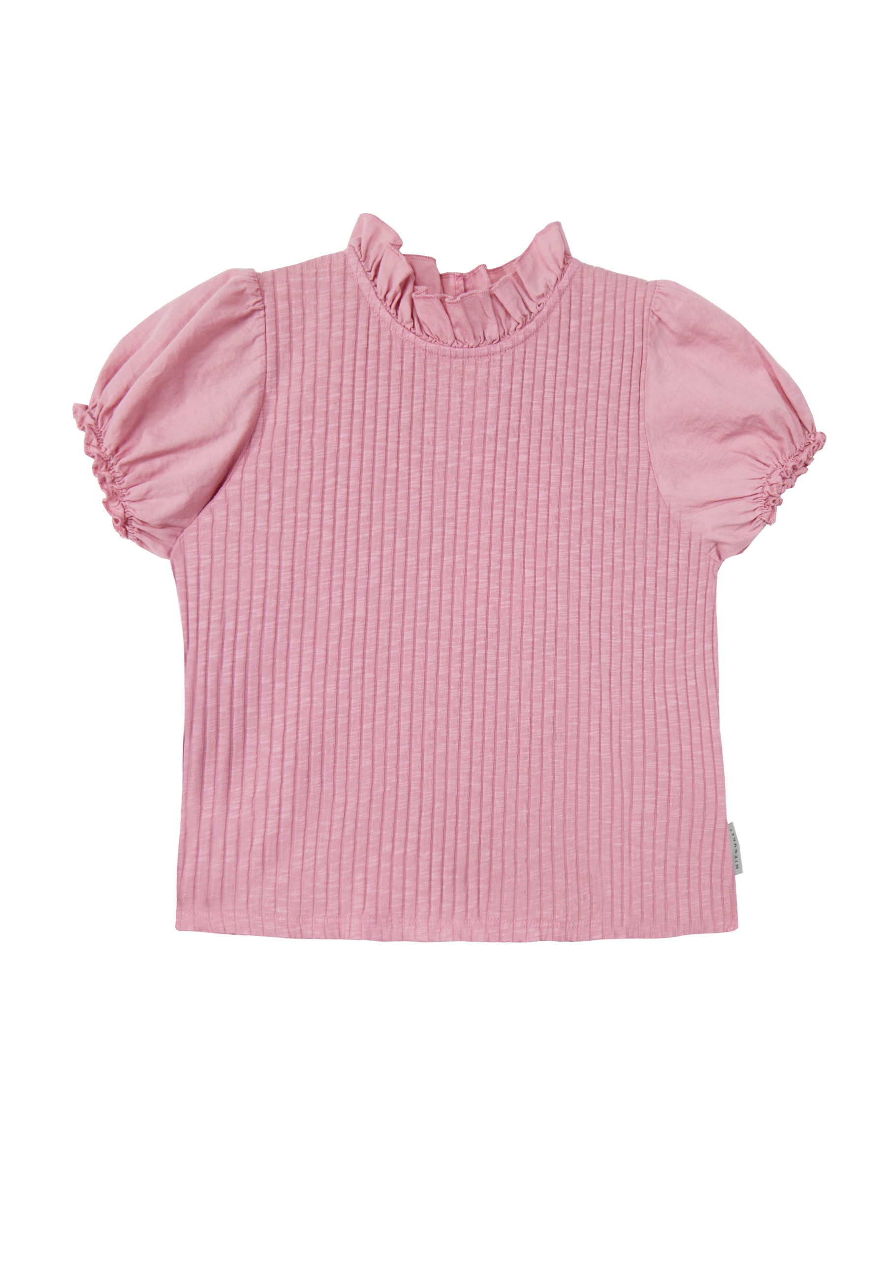 Everyday basics, but make them elevated. This sophisticated T-shirt is defined by a high neck, puff sleeves and a ribbed bodice for a striking aesthetic. - Stand collar - Short puff sleeves - Ribbed bodice - MIPOUNET logo label