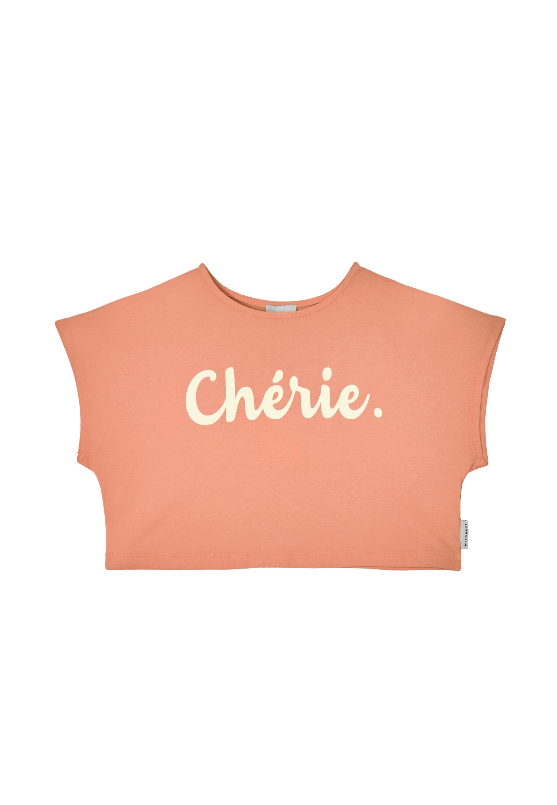 Colour is the ultimate form of expression, and this T-shirt is no exception. The cropped shape is stated in organic cotton jersey and defined by a cursive 'Cherie' print across the chest. - Crewneck - Dropped shoulder - Short sleeves - Cropped length - MIPOUNET logo label